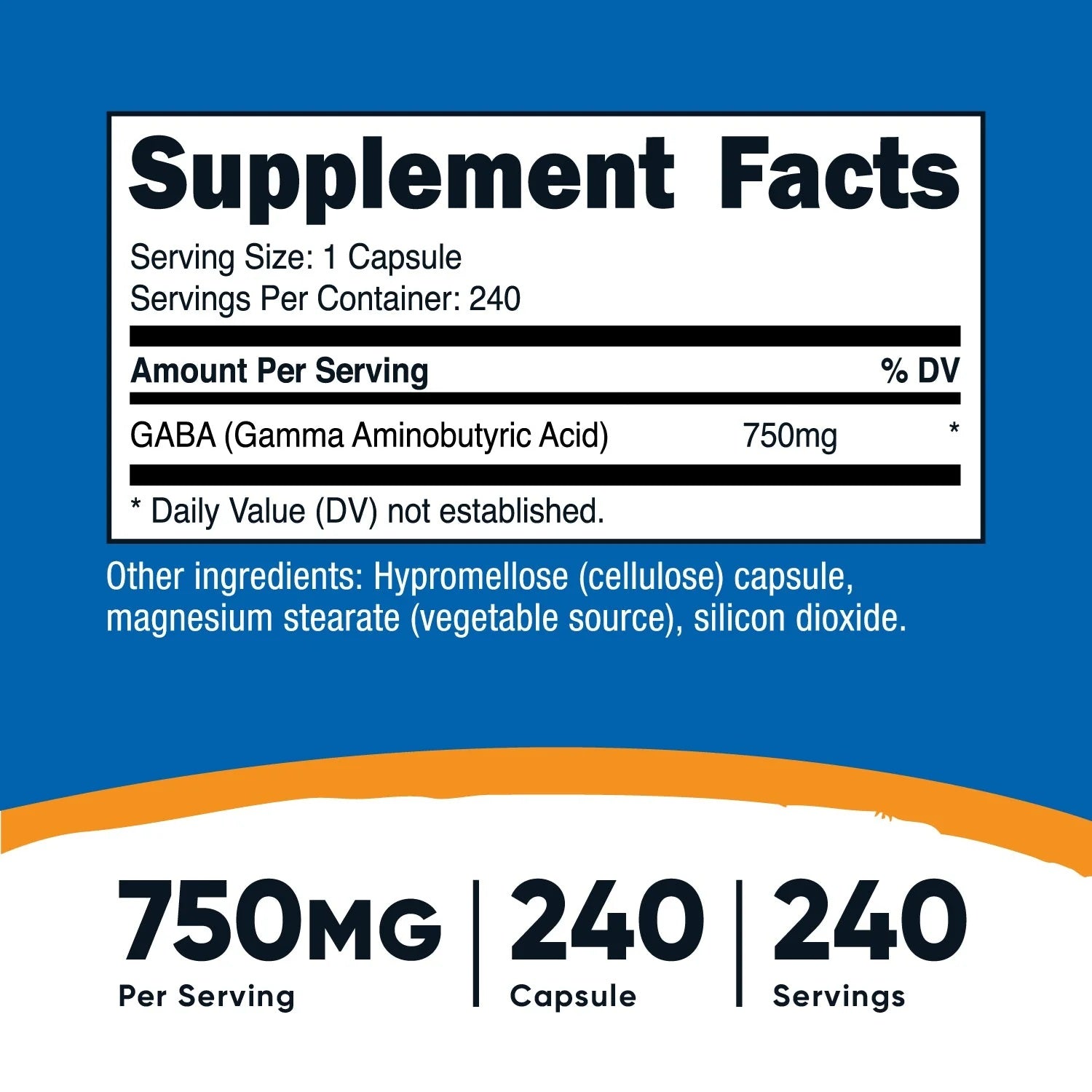 نيوتريكوست غابا (GABA) - ناقل عصبي يُساعد على تهدئة الجهاز العصبي وتخفيف التوتر. يُستخدم غالبًا كمكمل غذائي لتعزيز الاسترخاء، وتحسين النوم، وتقليل القلق. تشير بعض الأبحاث إلى أن غابا قد يُعزز التركيز والمزاج من خلال موازنة نشاط الدماغ. كما يُمكنه دعم تعافي العضلات وخفض مستويات الكورتيزول. مع ذلك، تختلف فعاليته كمكمل غذائي فموي، نظرًا لصعوبة عبور غابا للحاجز الدموي الدماغي.